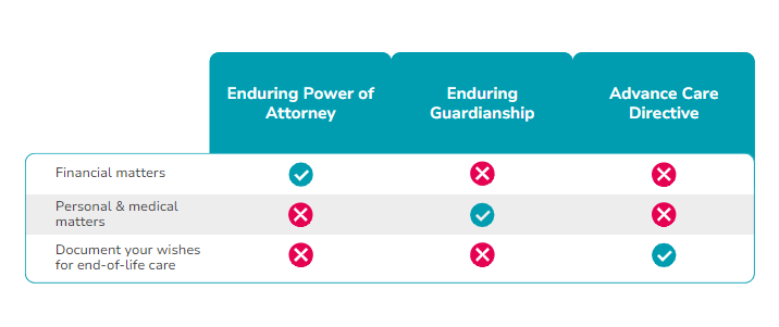 An Enduring Power of Attorney is a legal document in which you appoint another person to make property and financial decisions for you. Your Enduring Power of Attorney cannot make medical or lifestyle decisions for you.